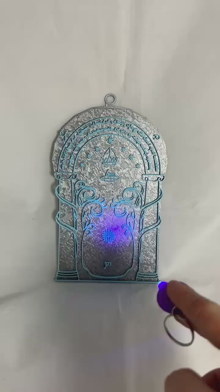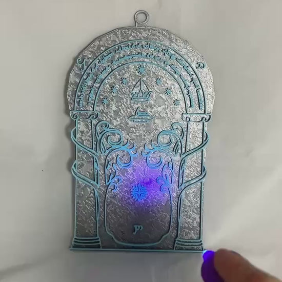 3D Lord of the Rings Inspired Moria Gate Blue Glow 8" Wall Sign LOTR + UV Light