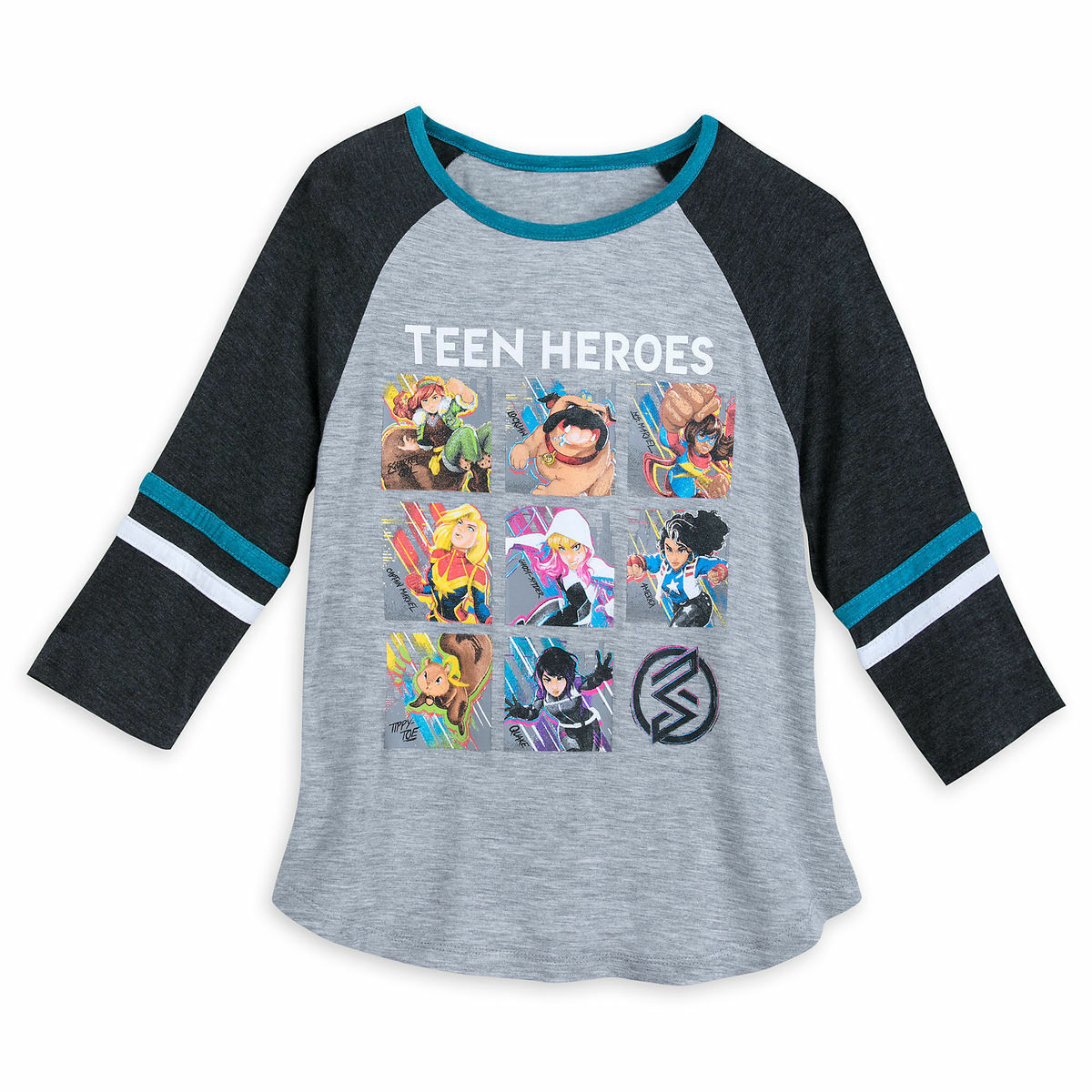 The ''Teen Heroes'' from Disney Channel's new show Marvel Rising: Secret Warriors are ready for action on this soft, comfy raglan top that features Squirrel Girl, Ms. Marvel, America Chavez, Quake, and more!