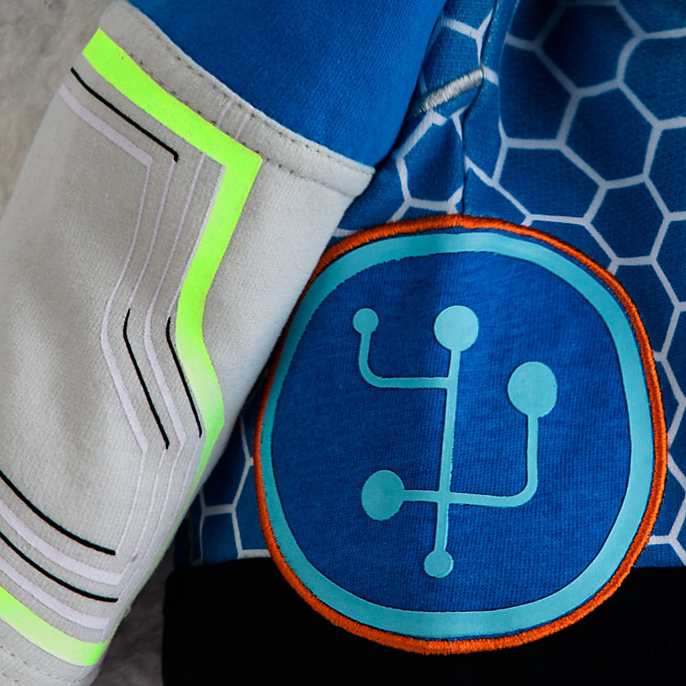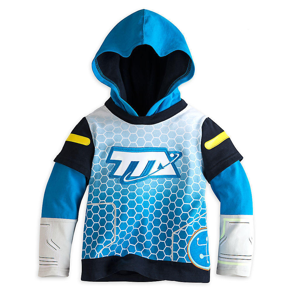 They'll enjoy a glowing future as they imagine themselves on exciting adventures as the youngest member of the Callisto family. Based on Miles' TTA uniform, this Miles from Tomorrowland Hooded Top features cool glow-in-the-dark features.