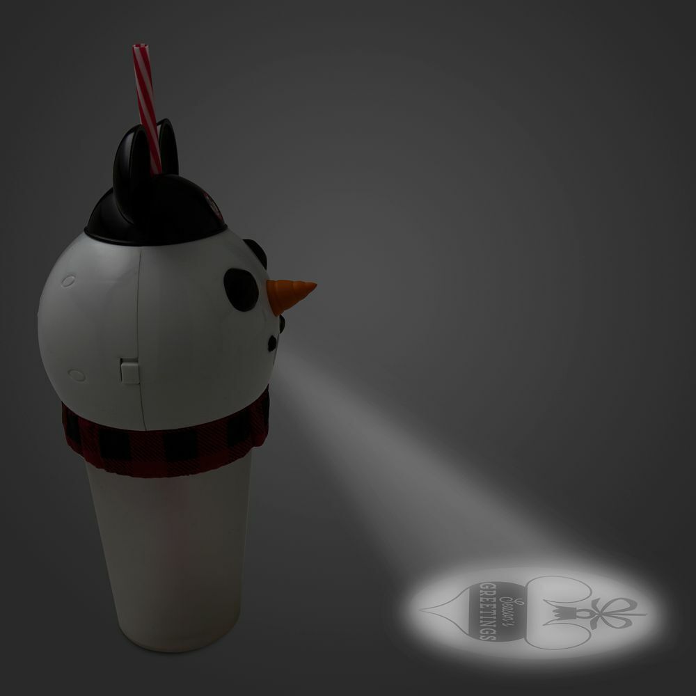 Anyone can join The Mickey Mouse Club, even snowmen. This fun and festive light-up tumbler sports a Mouseketeer Ear Hat on his head which forms the lid, while his plaid scarf keeps him warm. Press the buttons to see him project a holiday greeting or glow different colors.