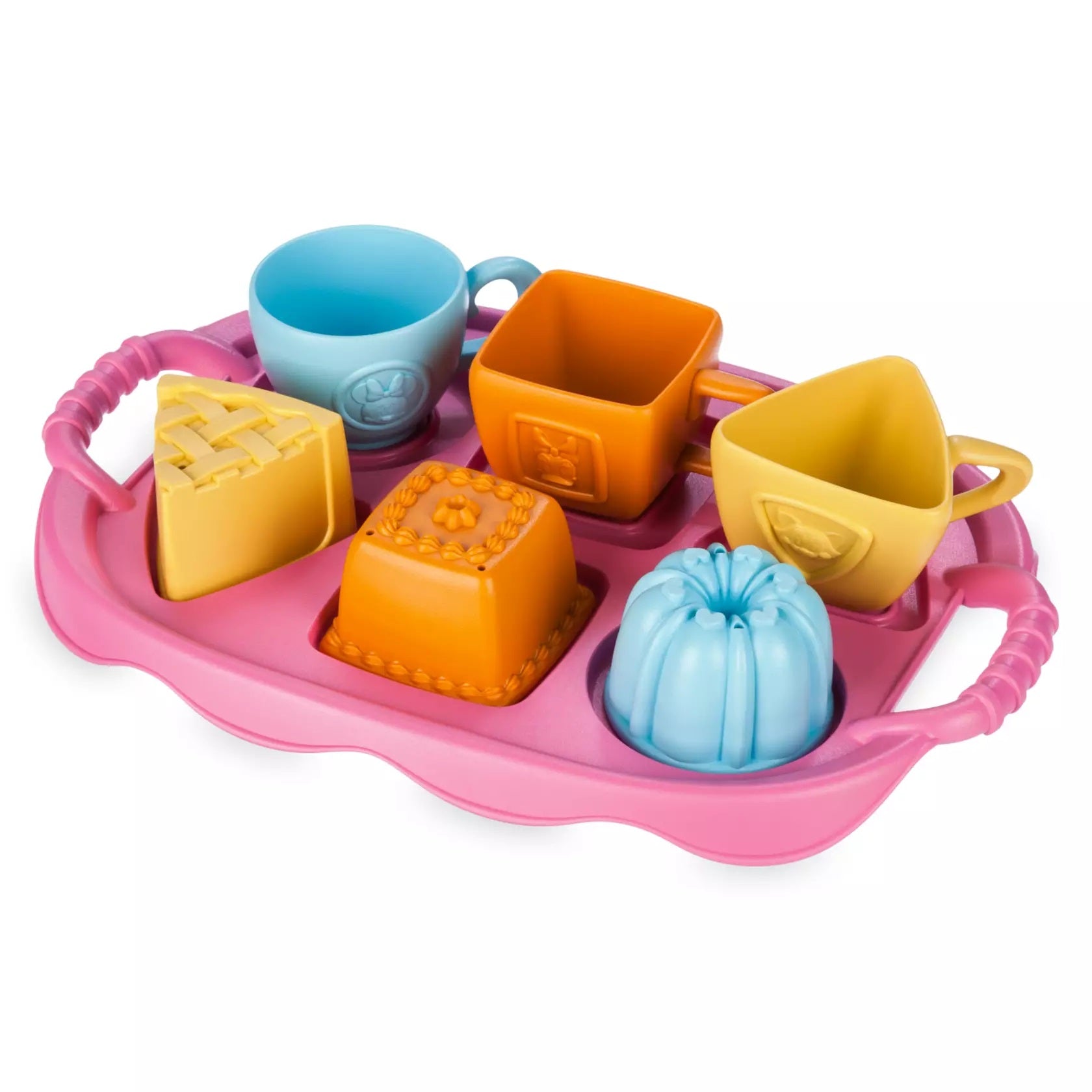 Tea for two times the fun! This adorable Minnie Mouse and Friends Tea Party Play Set is perfect for hosting playtime get-togethers and it's a fun sorting toy. This nine-piece set includes a tea pot with detachable lid, three cups and three pretend treats. Your little one can match up the shapes with the right spaces on the tray and delight in all the sweet details including the Minnie Mouse icon lid. So colorful and engaging, it is made from recycled plastic so it's pretty smart too.