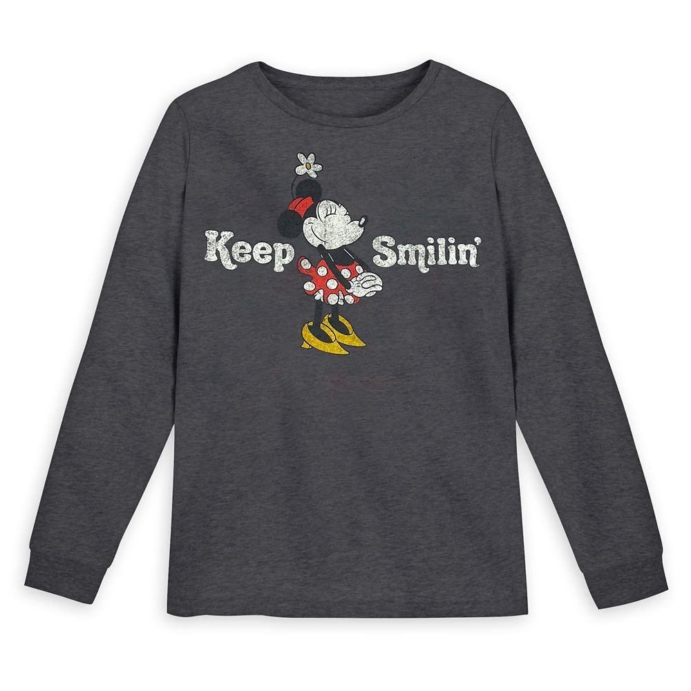 You’ll keep smilin’ throughout the day in this heathered vintage look tee with classic Minnie Mouse art and long raglan sleeves.