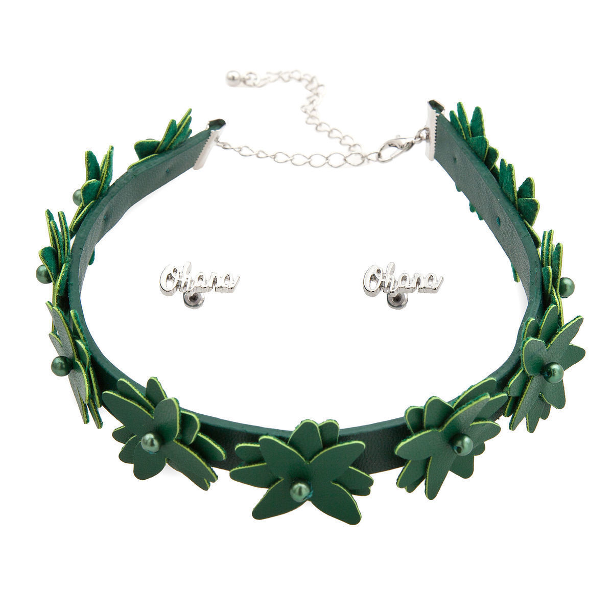 Show off your tropical style with this Lilo jewelry set, inspired by Lilo & Stitch. Featuring a layered faux leather leaf choker plus a set of dainty ''Ohana'' post earrings, you will be charmed by the island spirit.