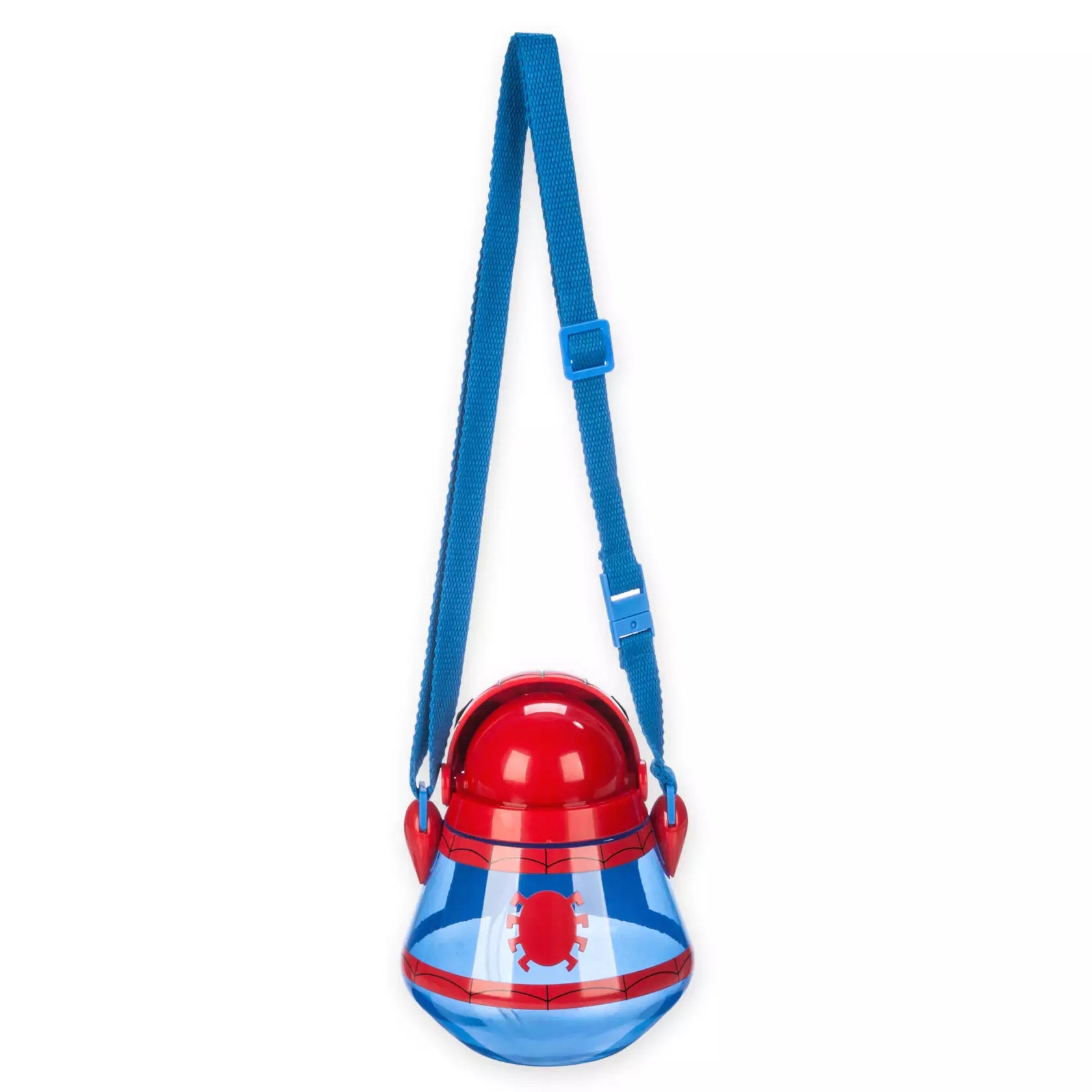 Thwap! This Spider-Man travel mug is ready to go wherever adventure leads. The sculpted plastic cap tilts back to reveal a flexible sipper straw, while the adjustable fabric carry strap features a safety lock and buckle. It's a fresh and fun design that's super amazing!