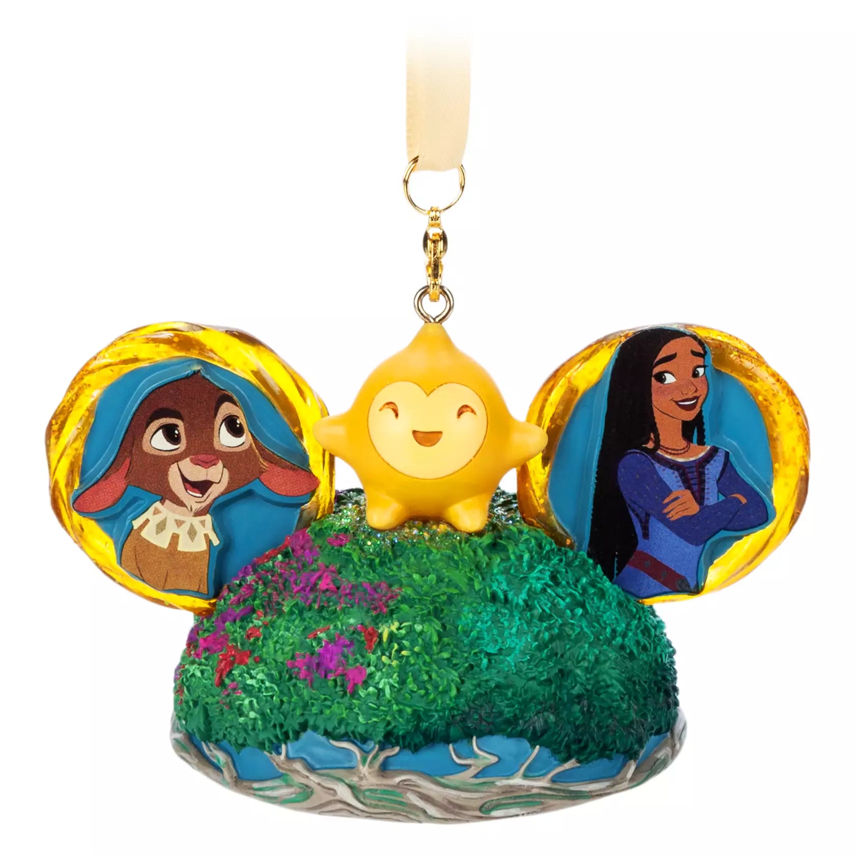Star will shine from the top boughs of your holiday tree when you hang-up this fully sculpted Ear Hat Ornament designed by Costa Alvesos for Disney. Asha, Valentino, King Magnifico and Queen Amaya join the party as illustrations on the ears, surrounded by glittering translucent trim. Inspired by Disney's animated film Wish.