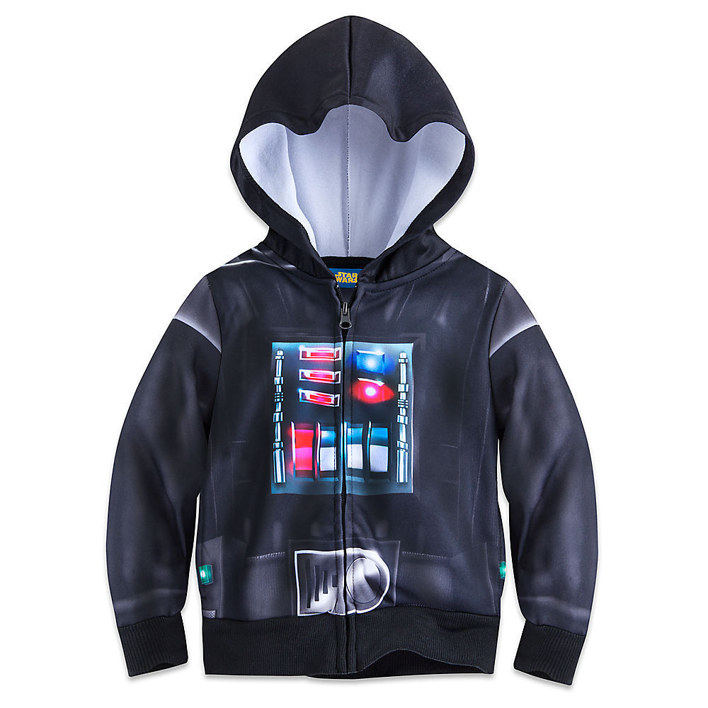 Junior Jedi will keep warm on the dark side of the Disney Parks wearing this sublimated ink hooded sweatjacket in the image of Darth Vader's famous costume from the original Star Wars saga.